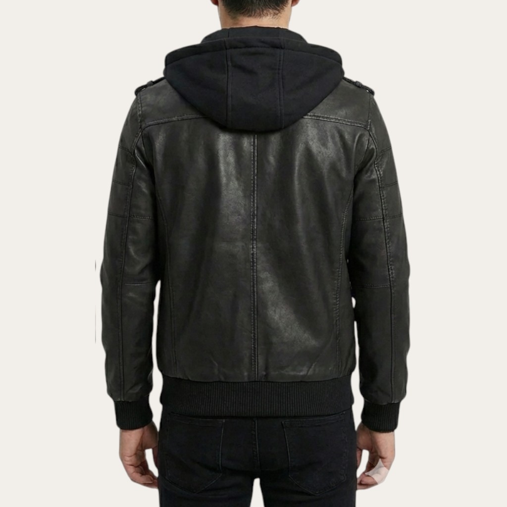 Upgrade your everyday style with this Dark Grey Hooded Leather Jacket, crafted from genuine sheepskin leather with a smooth semi-aniline finish. Lightweight yet durable, it offers lasting comfort with a clean, modern look—perfect for everyday wear in cooler weather.